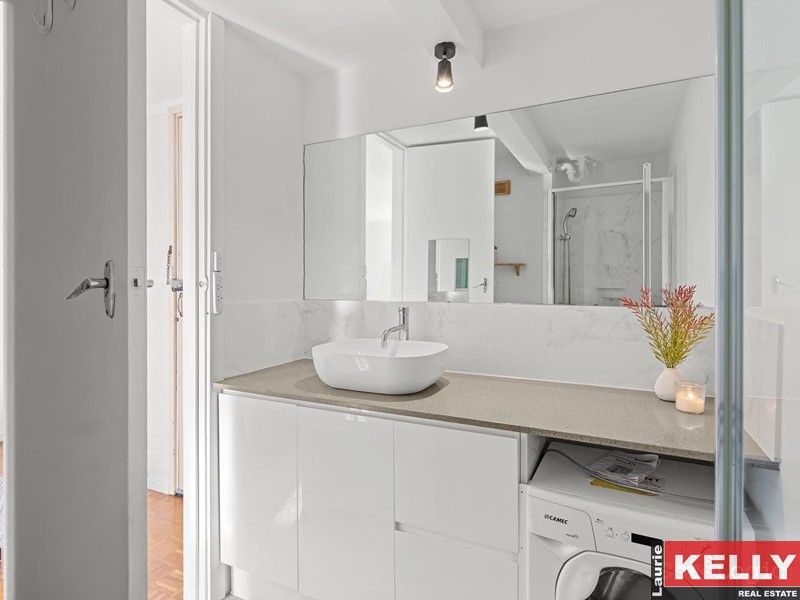 Boasting a spacious layout, this studio apartment features a modern bathroom and a well-equipped kitchen. The open-plan living area is flooded with natural light, creating a warm and inviting atmosphere. The large window provides sweeping views of the picturesque East Perth landscape.