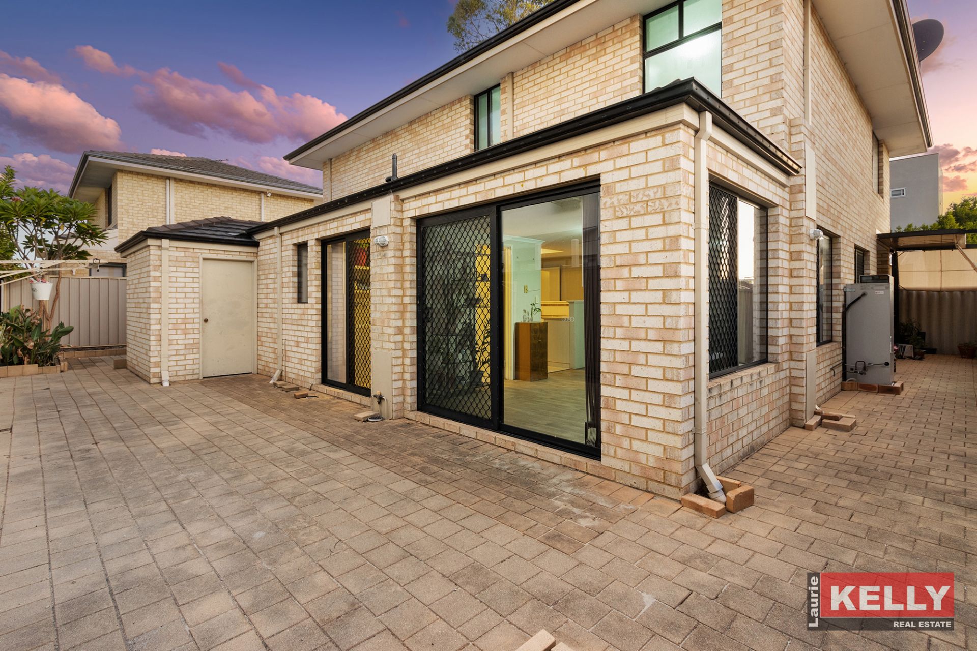 Immaculate two storey home in small group of four only one block from Belmont Forum Shopping Centre. Privately positioned at rear of the complex and boasting a double automated garage plus parking for another 2 cars or camper/boat/trailer. Easy-care fully paved 291sqm block, no lawns to mow! Shady 23sqm alfresco plus another private courtyard and plenty of space for kids. With just over 200sqm of building this home is not small offering two massive living zones with three bed two bath upstairs.