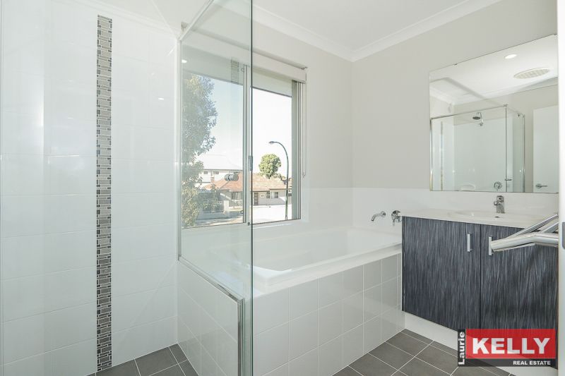 The upstairs bathroom is equipped with both a shower and a bath, and there is another toilet downstairs attached to the laundry.
