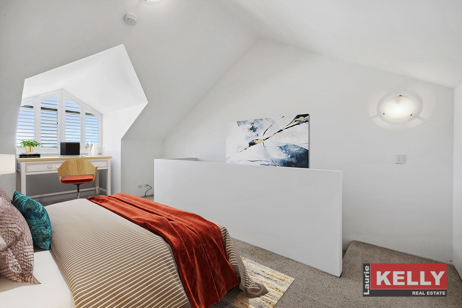 • Staircase leads to New York style loft with split a/con.