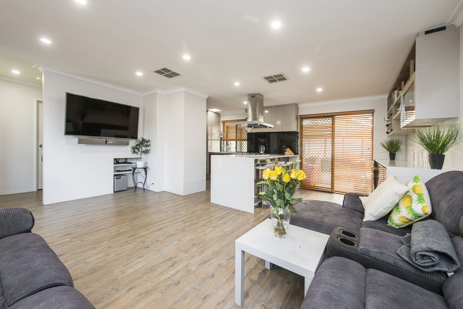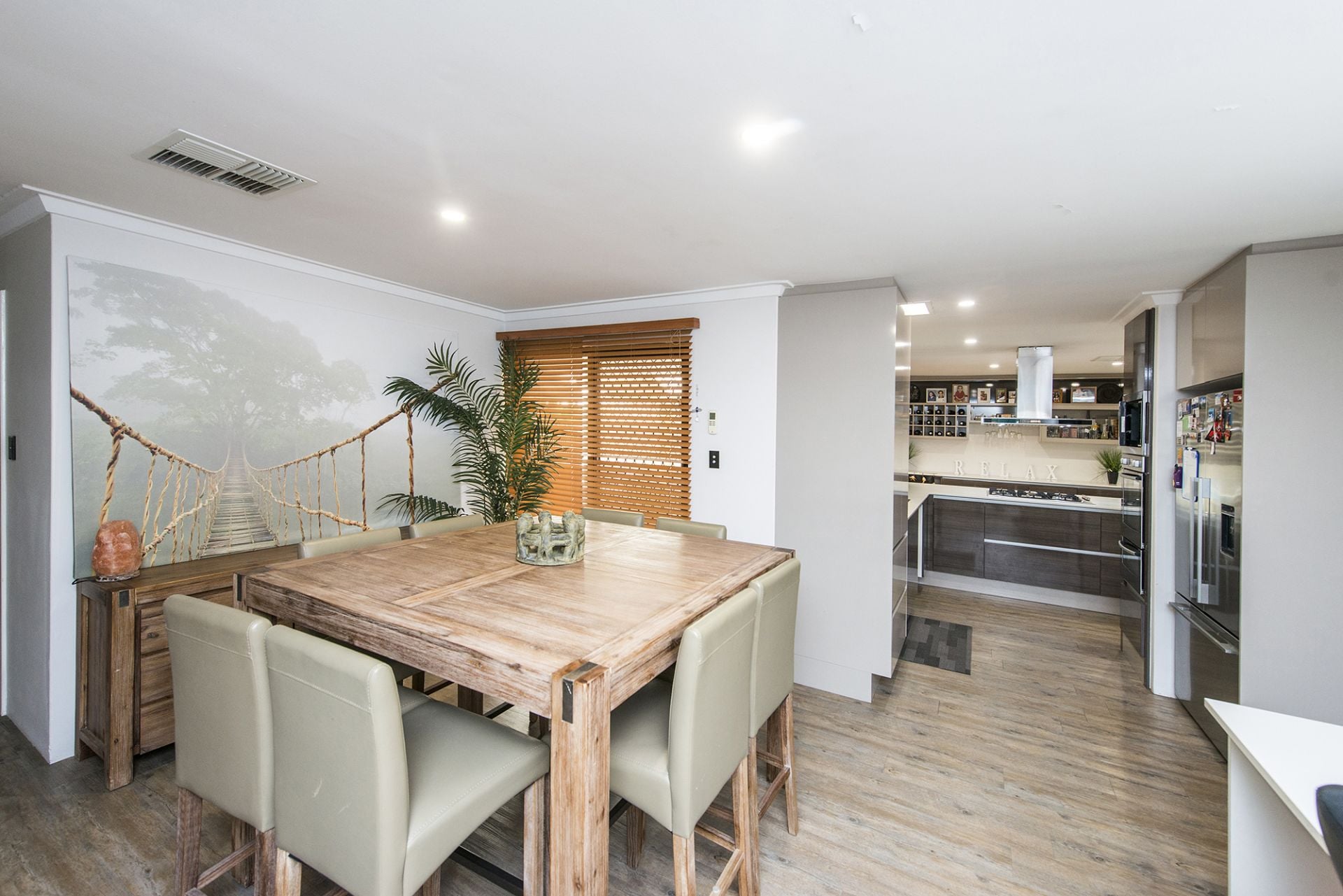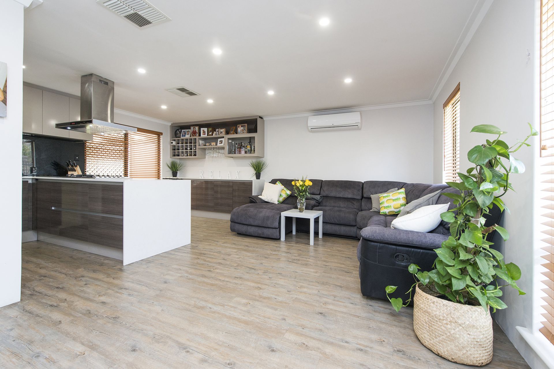 • Timber style floors & blinds with vogue paint.