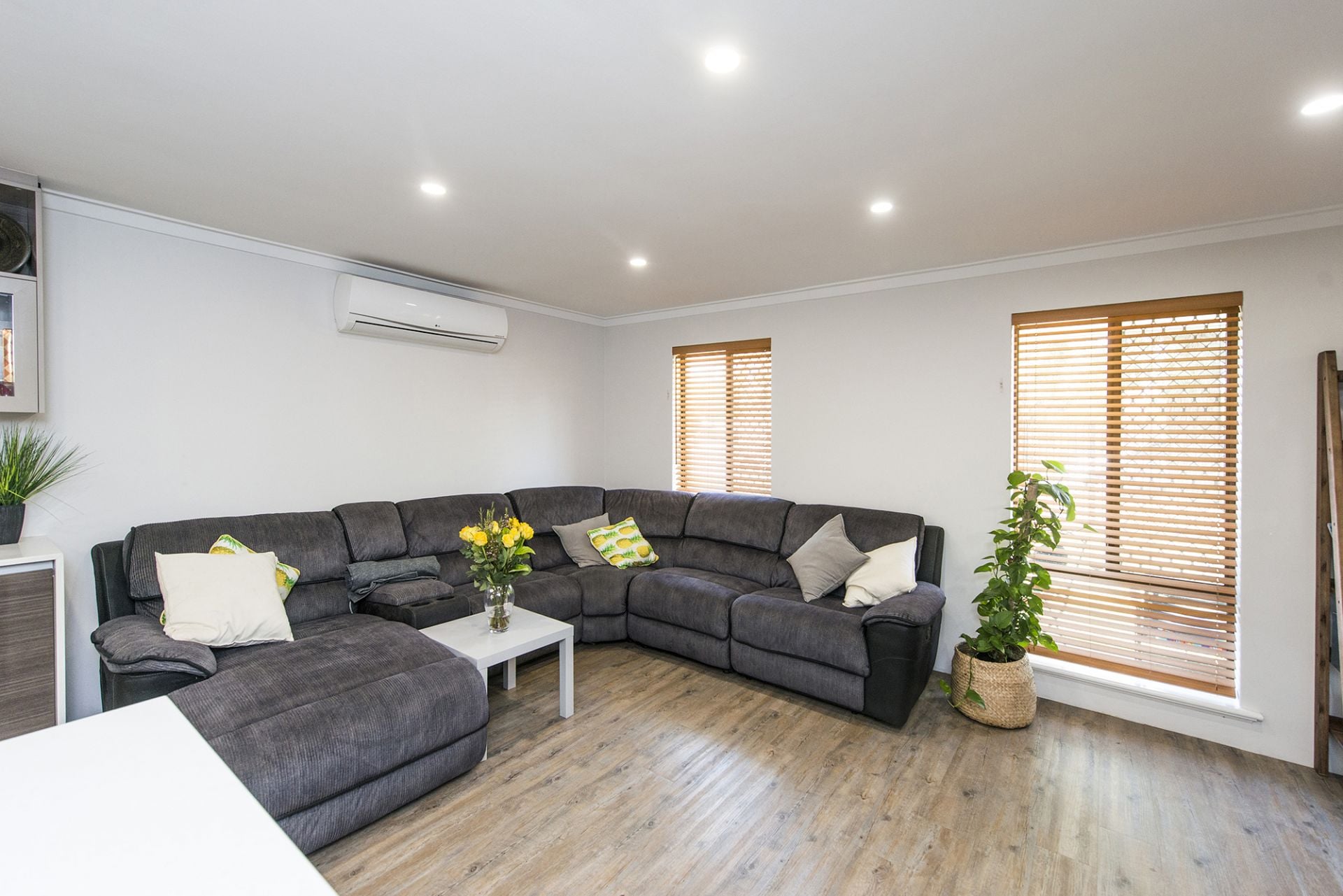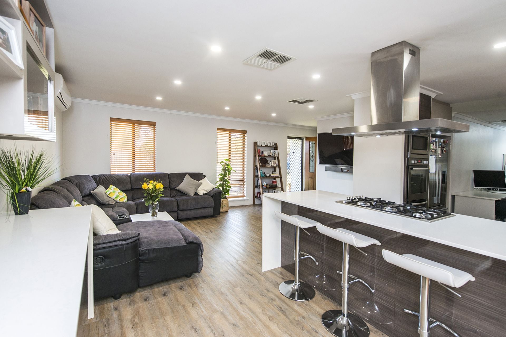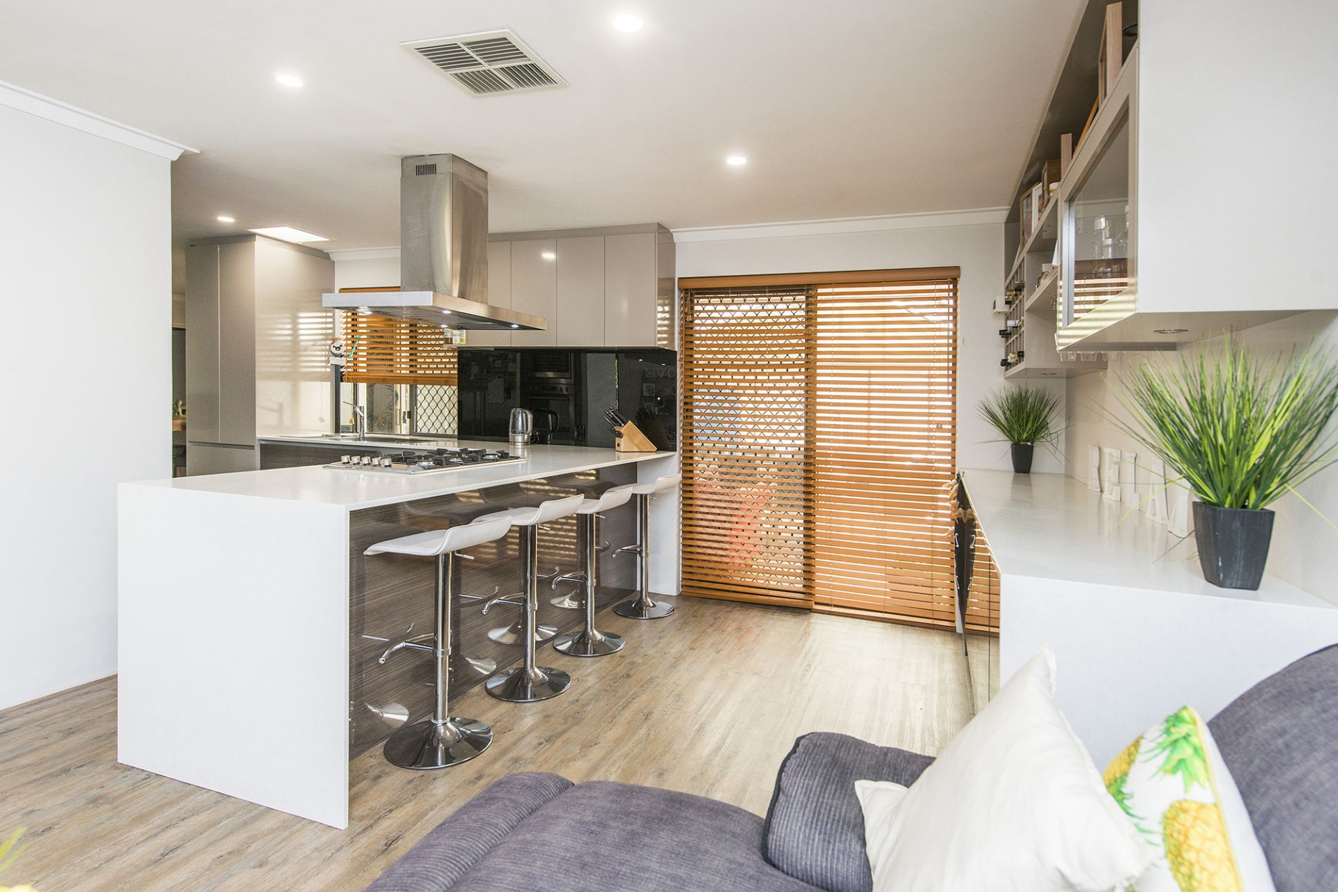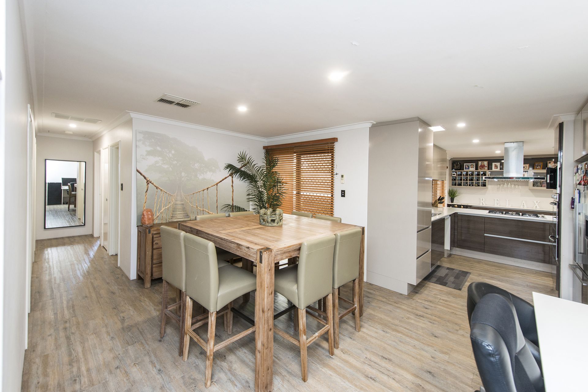 • Timber style floors & blinds with vogue paint.