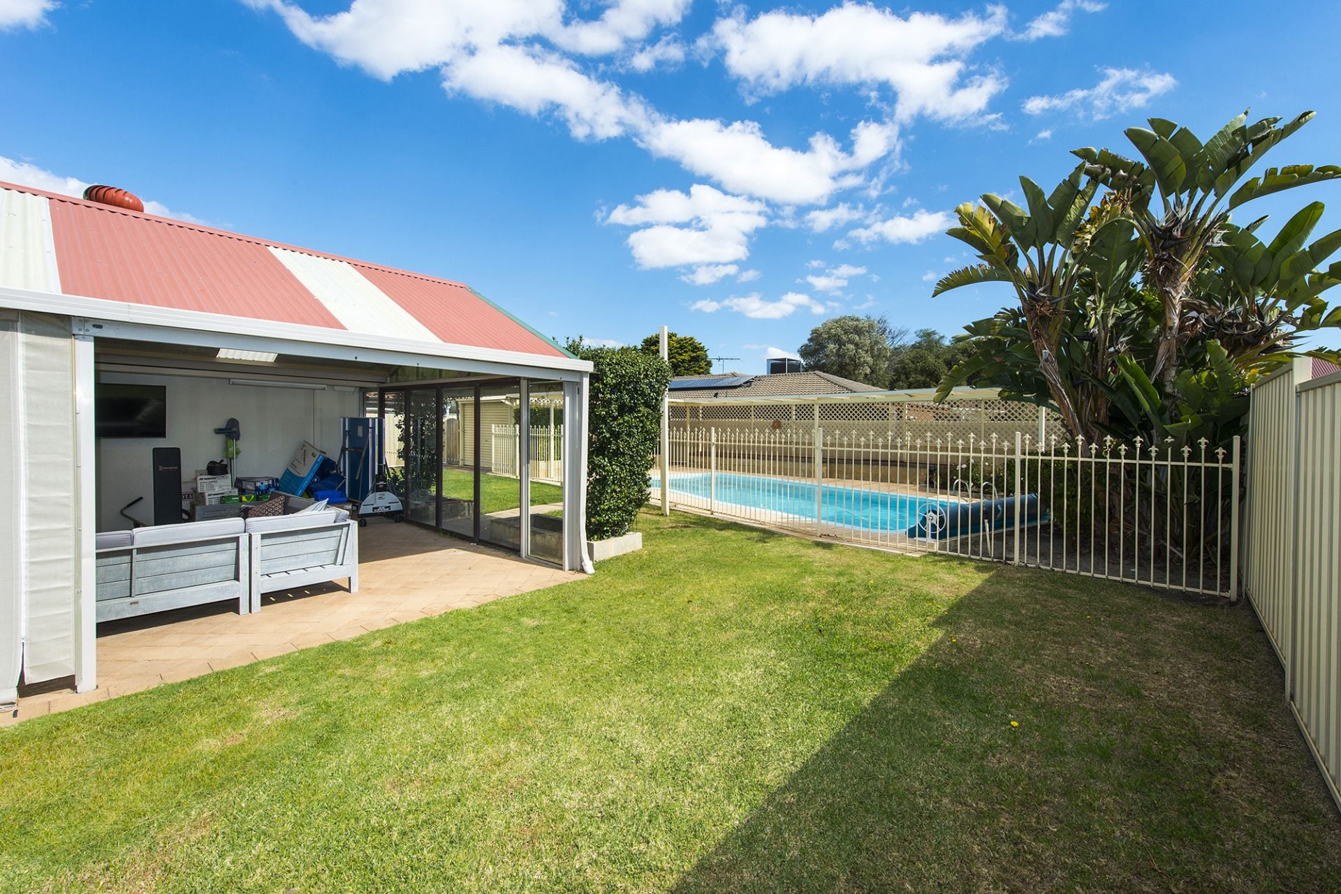 • Swimming pool with heaps of covered seating.
