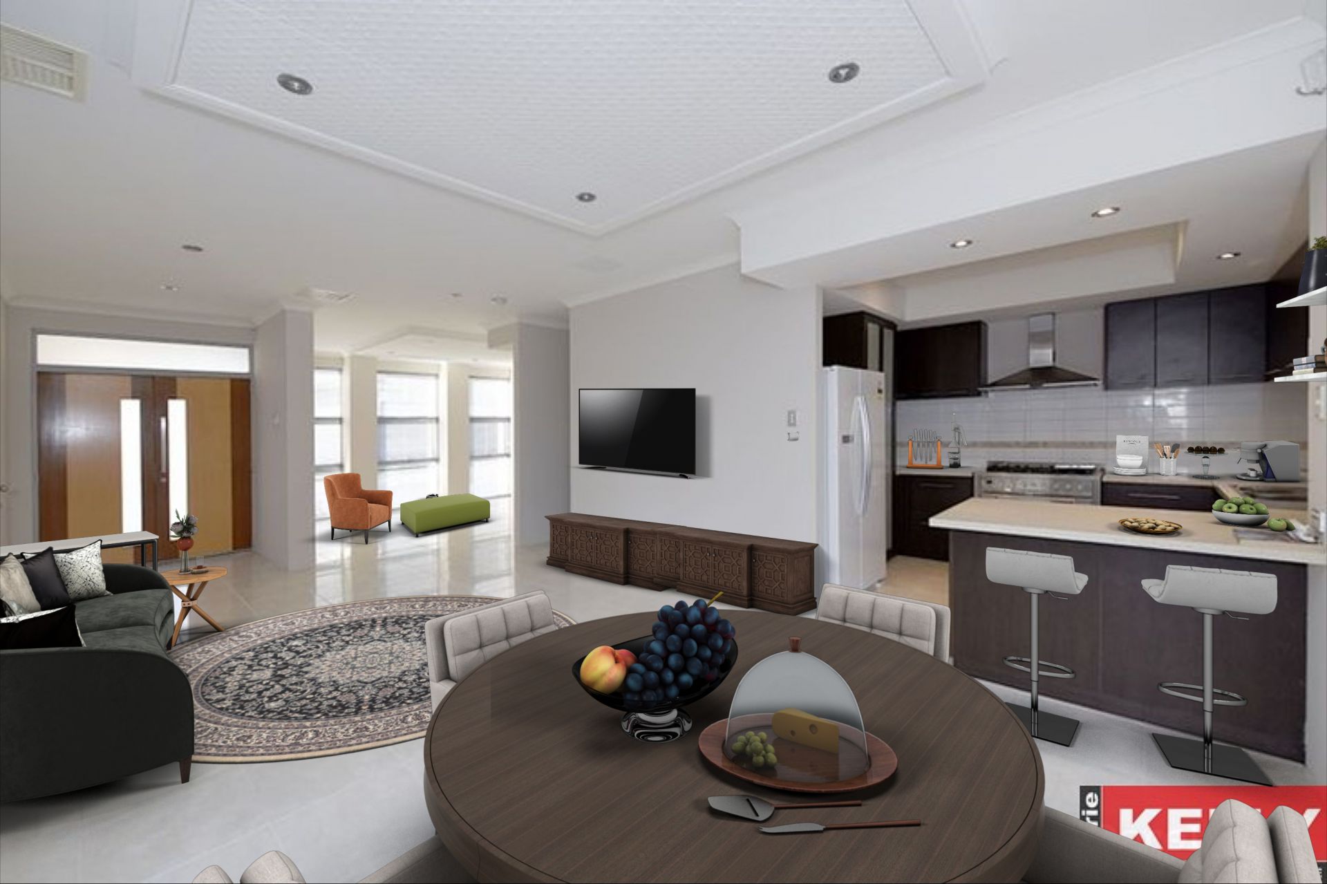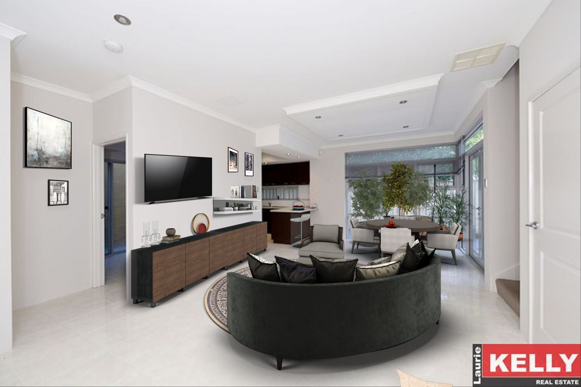 • Generous open plan living space with sky high feature ceilings.