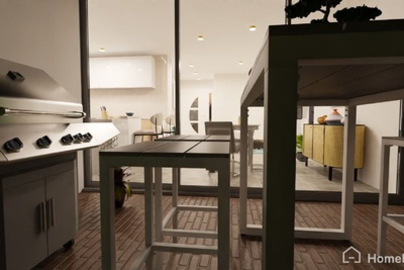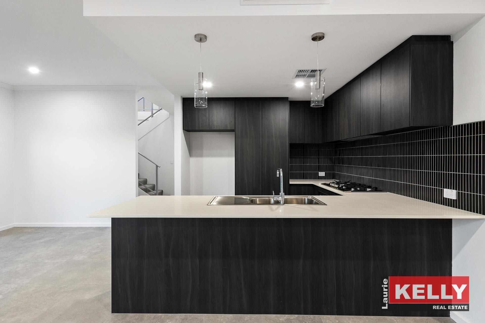 - Stainless streel kitchen appliances with 20mm engineered stone bench.