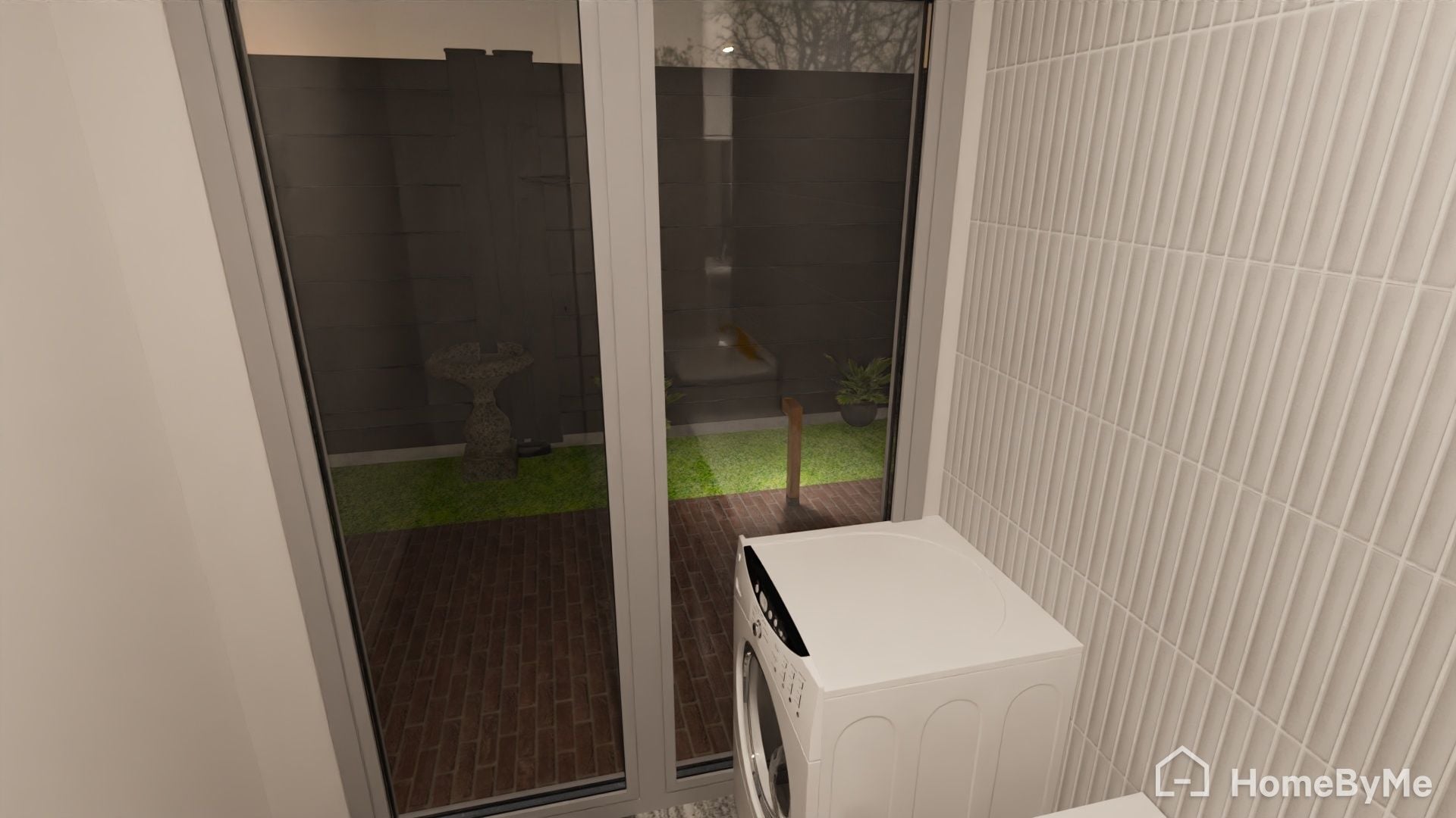 - Concealed clothesline to side of property and direct laundry access.