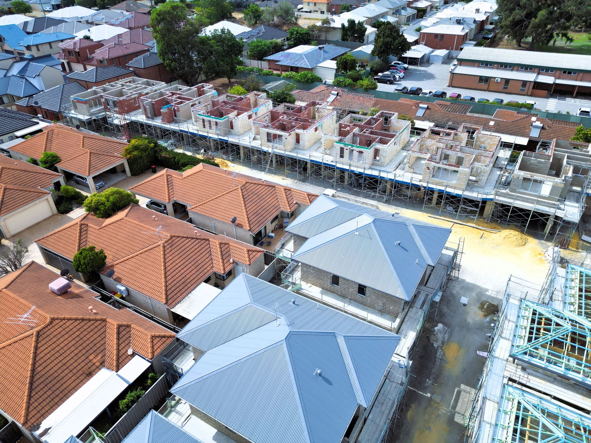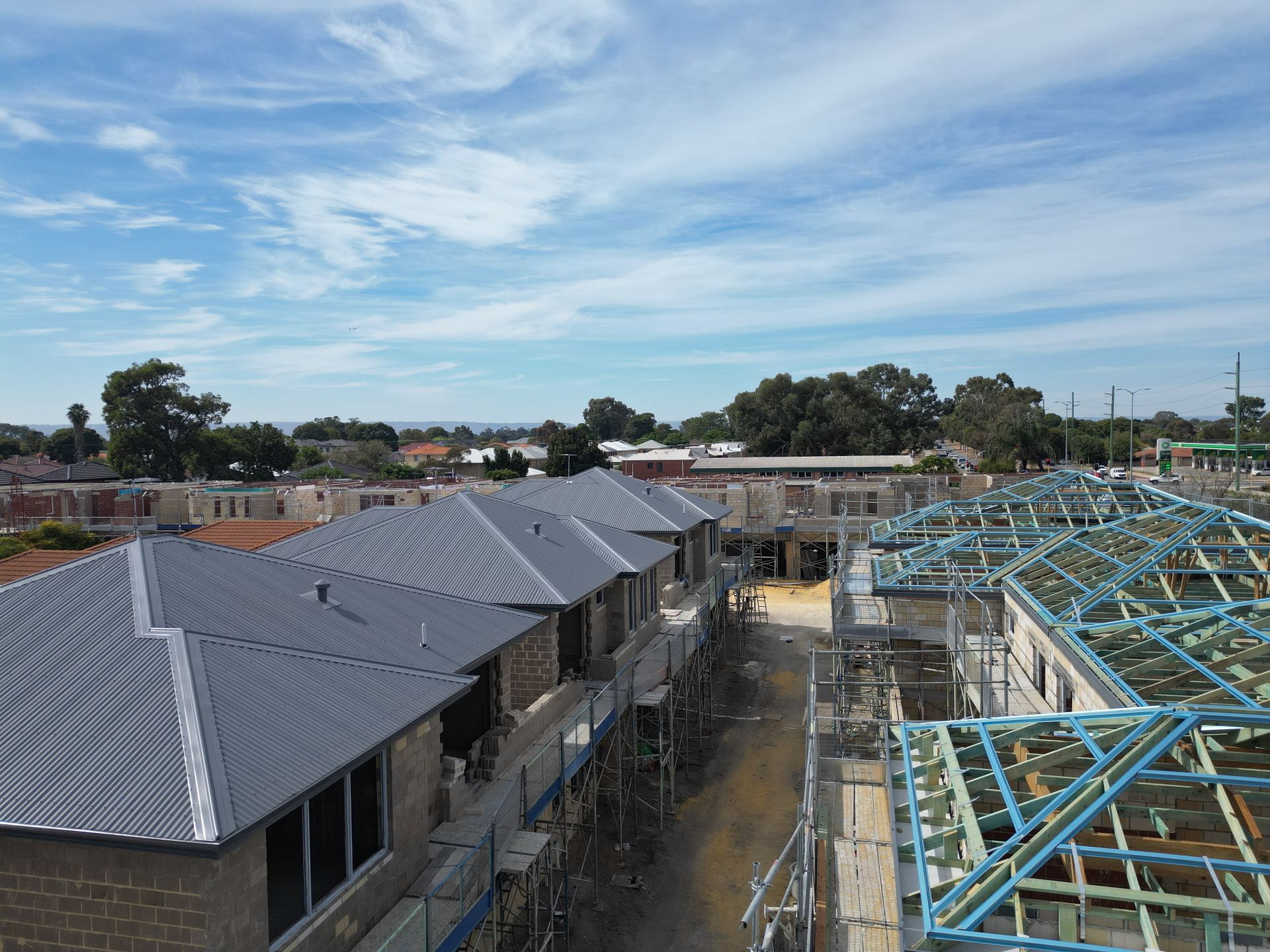 - Colour bond fencing, aluminium slat gates and reticulated landscaping.