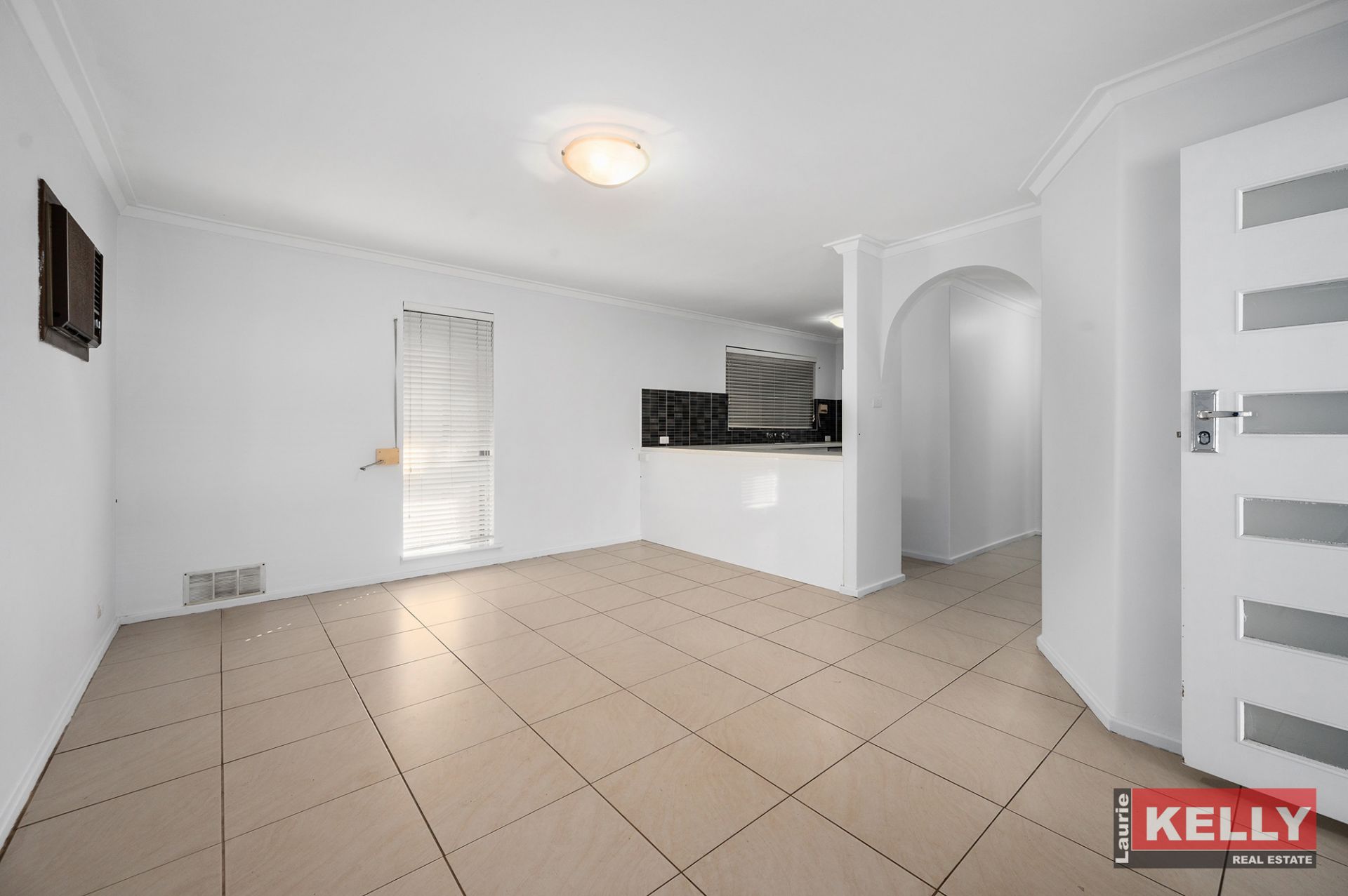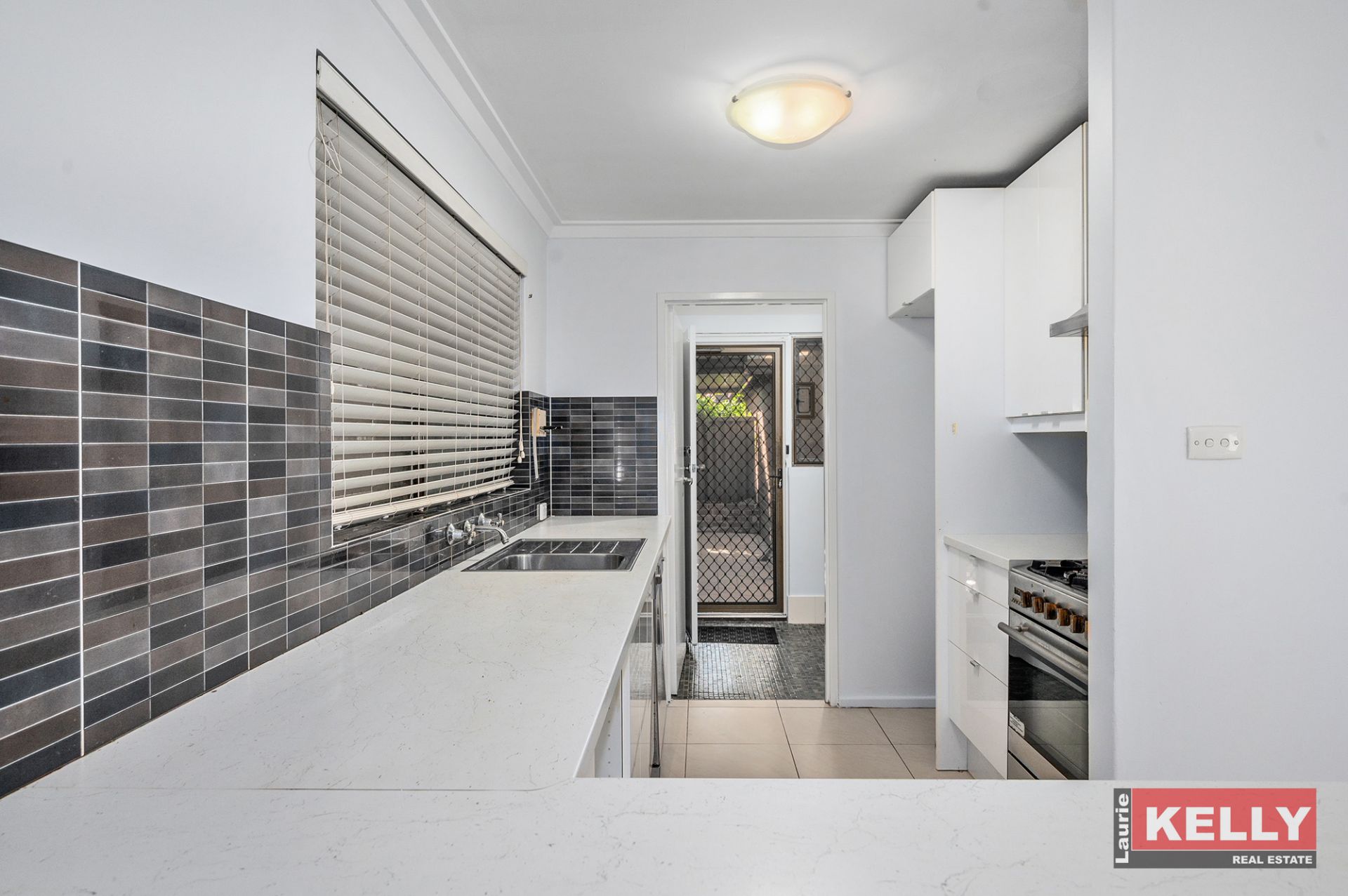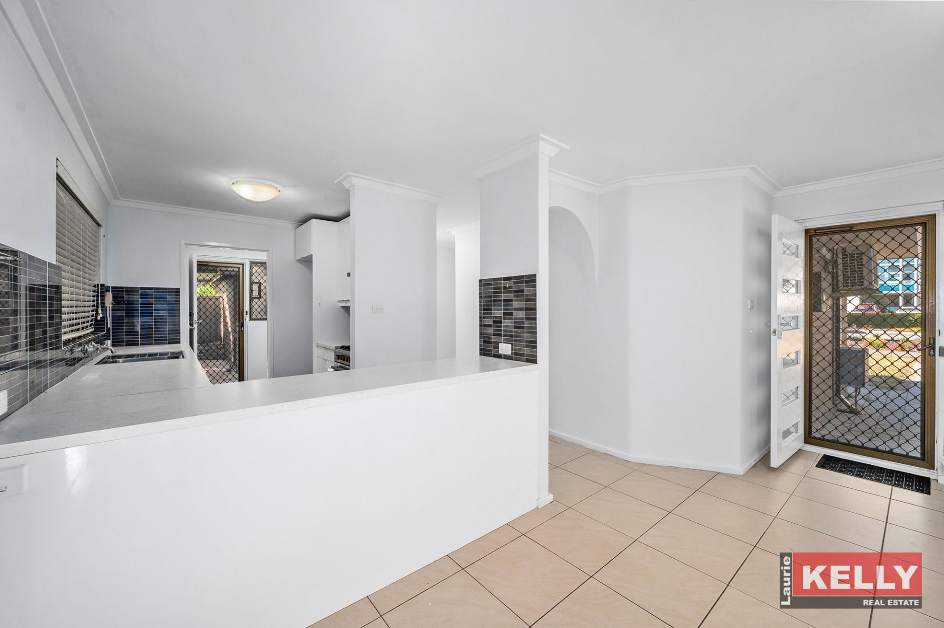 • Tiled living area with modern galley style kitchen.
