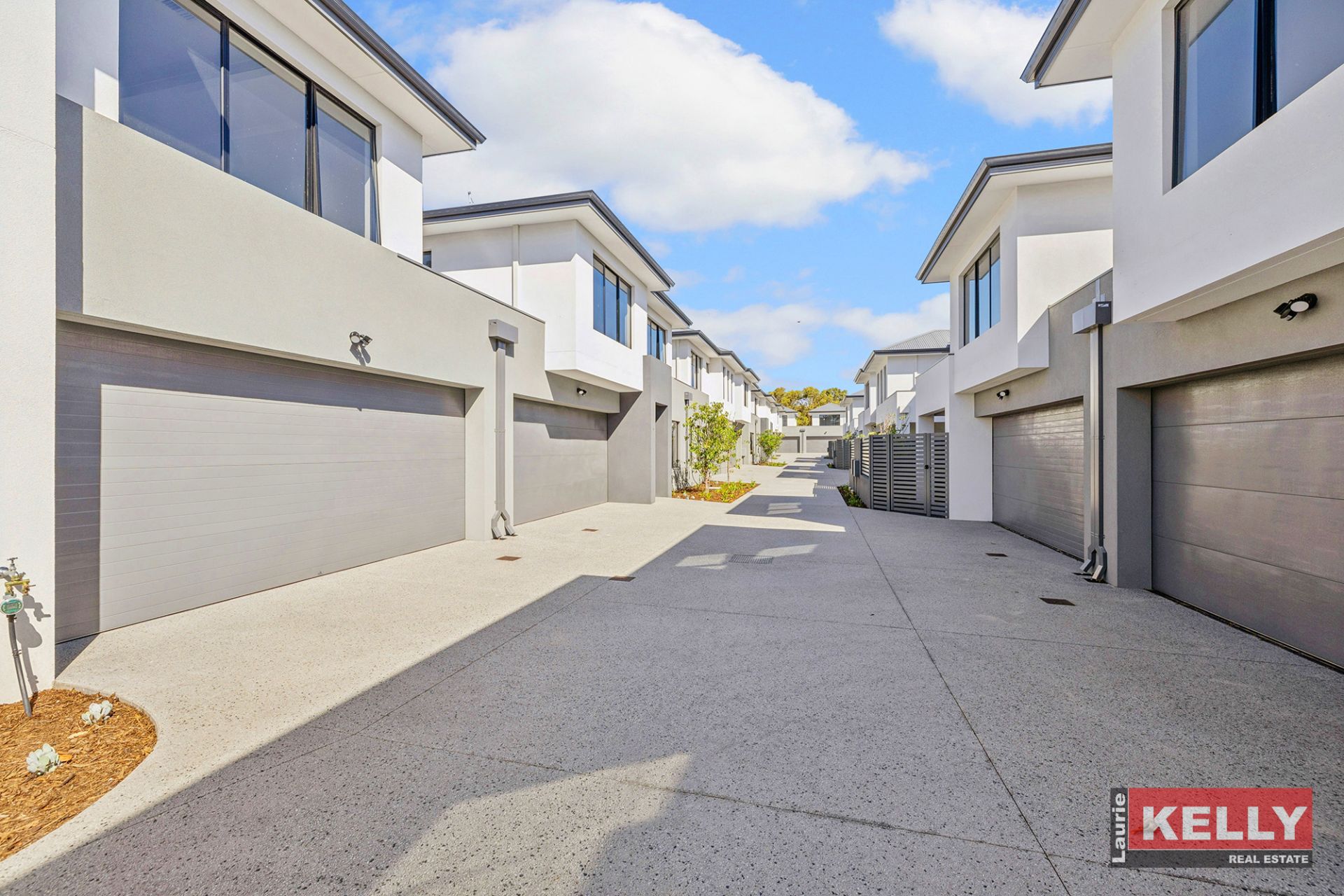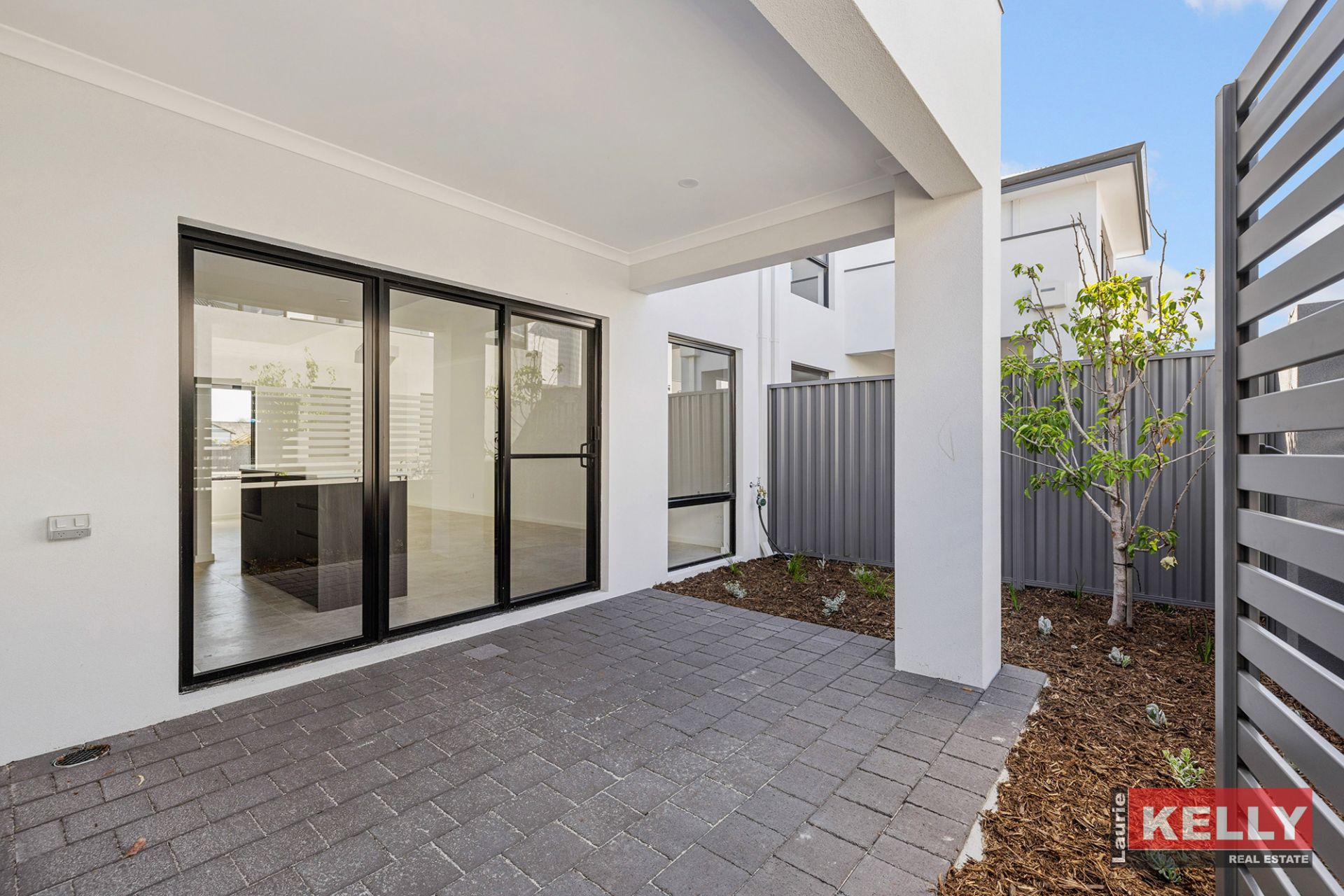 - Colour bond fencing, aluminium slat gates and reticulated landscaping.