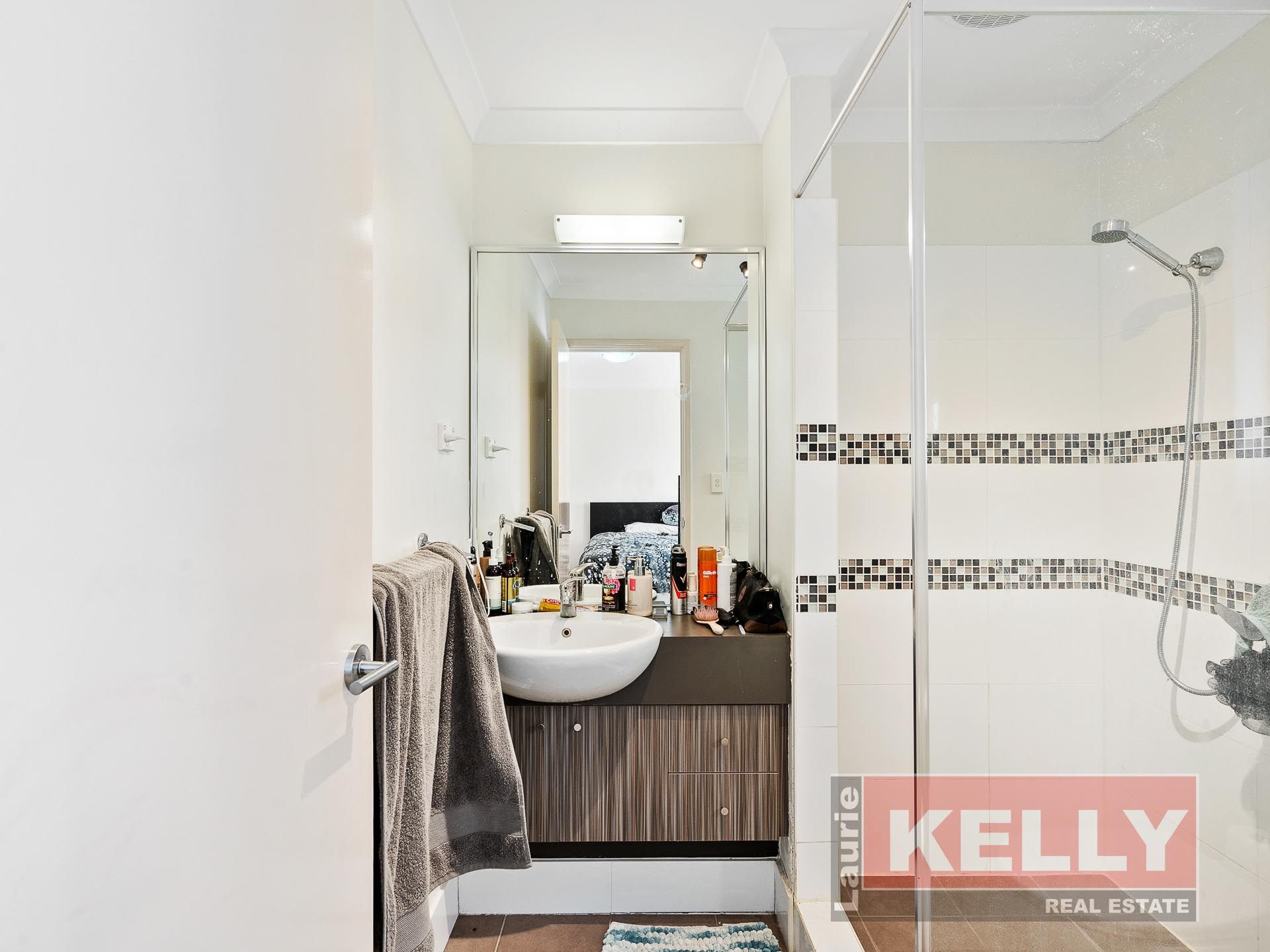 • Downstairs living and dining area (air-conditioned) separated by stylish kitchen finished off with trendy timber flooring.