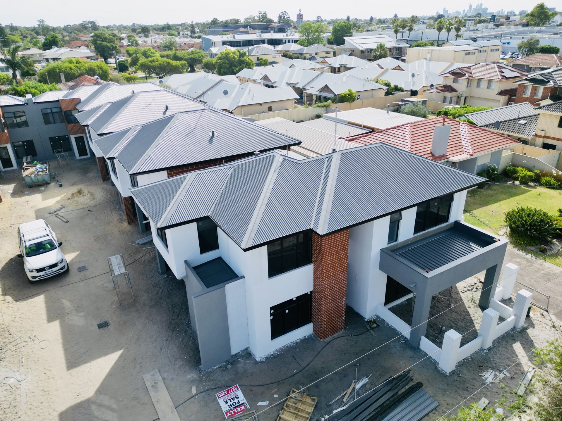 - Colourbond fencing, aluminum slat gates and reticulated landscaping.