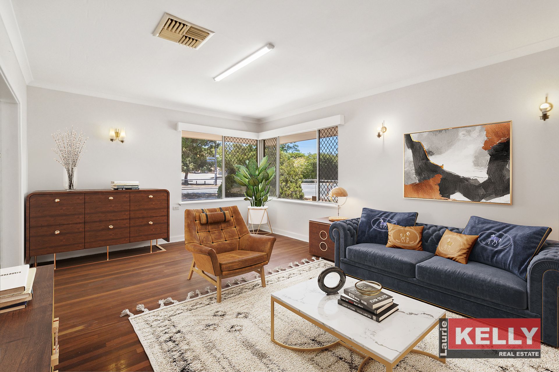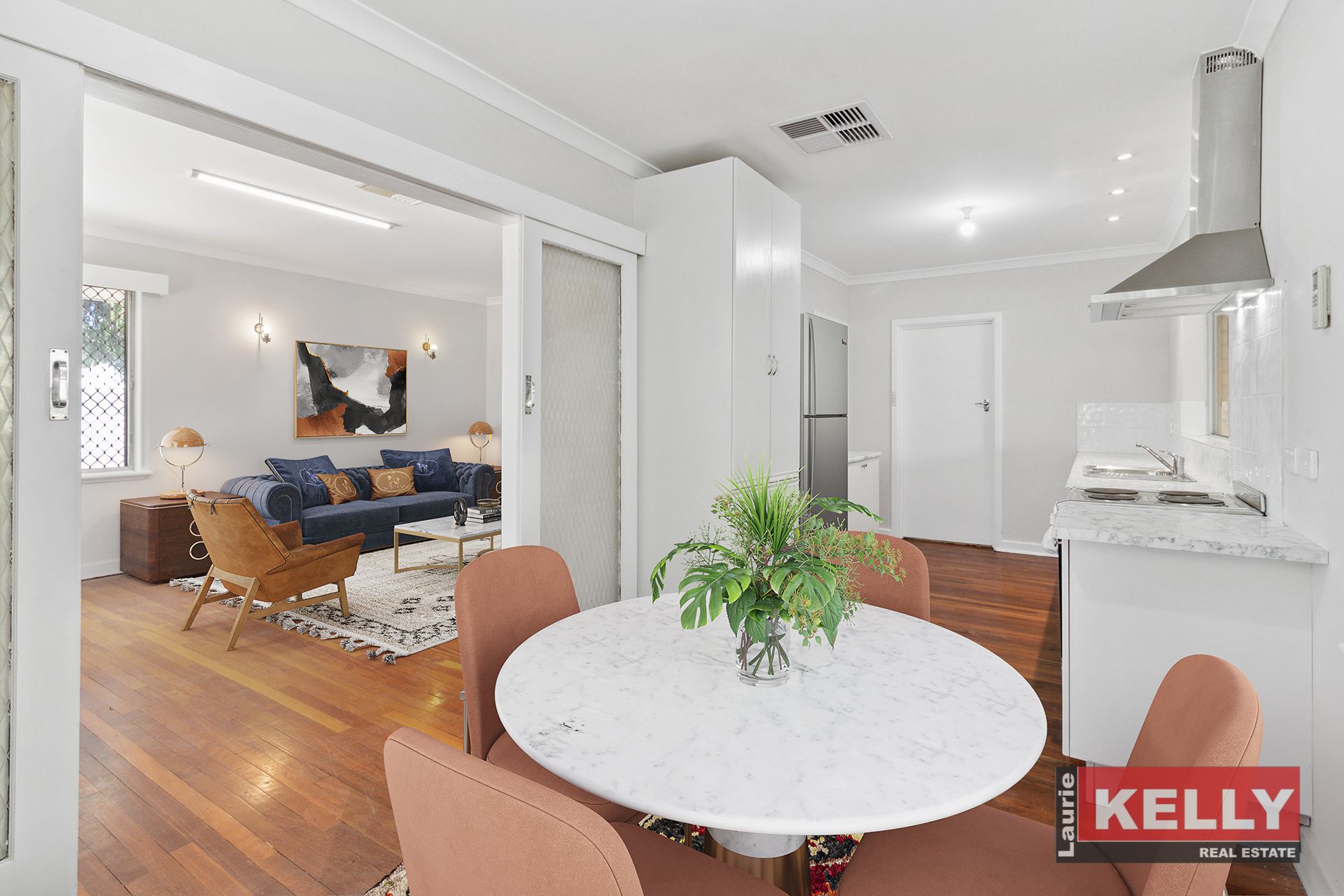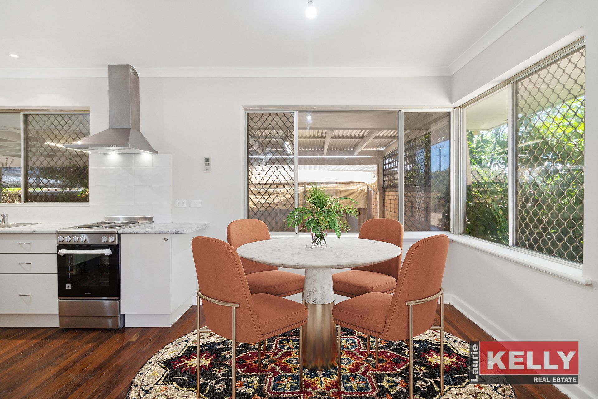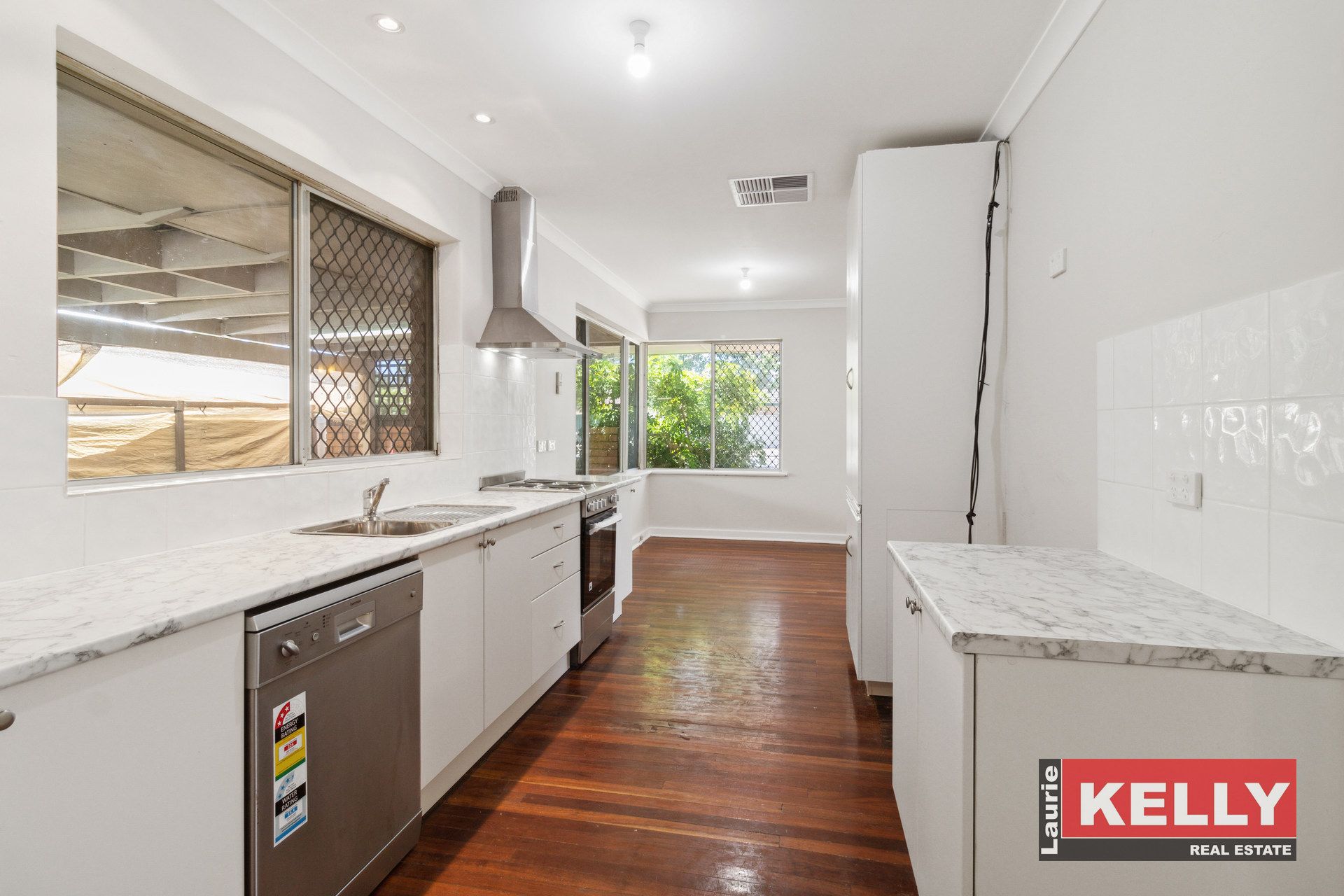 • Jarrah floorboards, neutral décor, modern kitchen & bathroom.