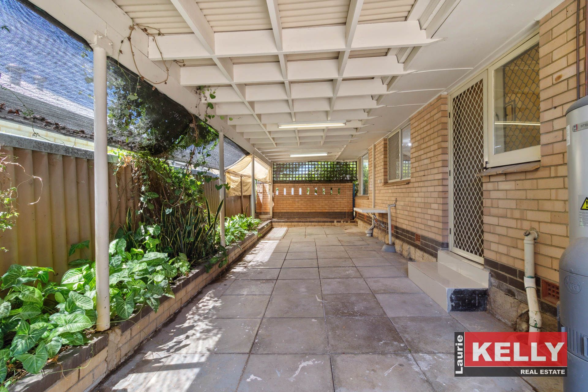 • Storage shed set behind secure wall plus bore and garden beds.
