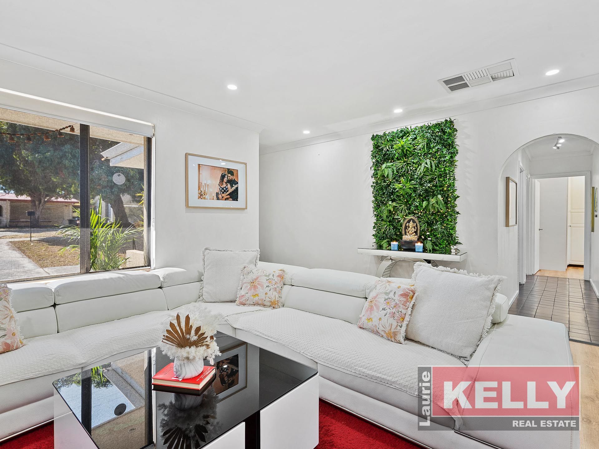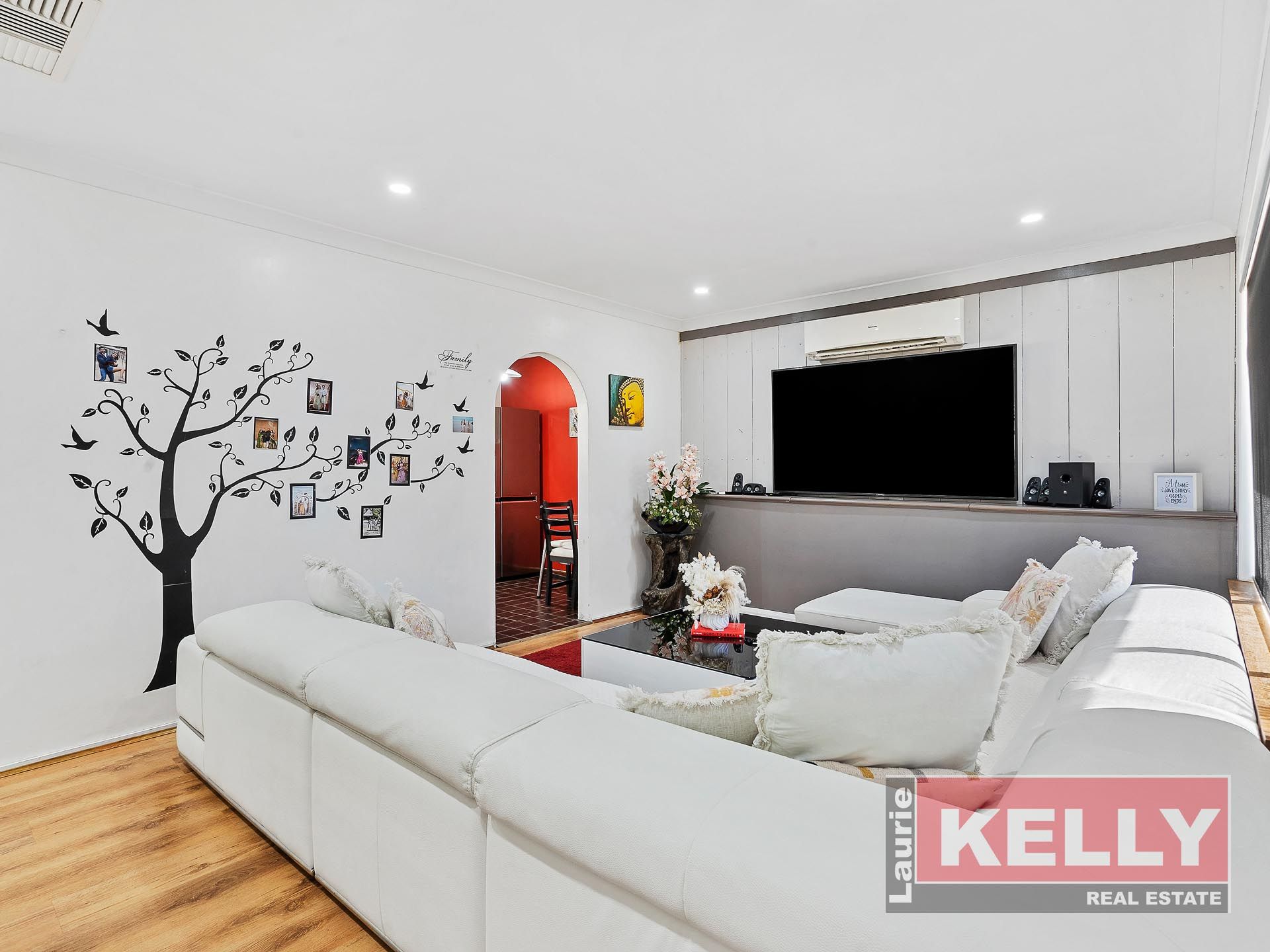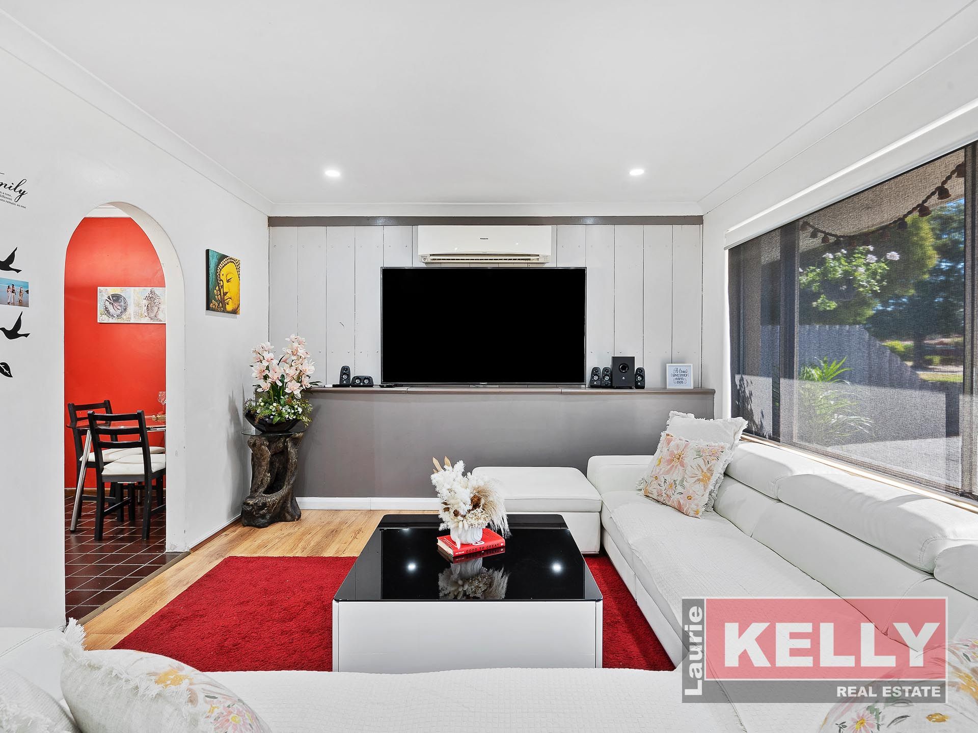 • Formal light filled lounge room with reverse cycle split system air-conditioner. You'll love the timber panelled decorative wall perfect for tv entertainment unit (as shown in images) which hosts a closed off open fireplace which could easily be opened back up.