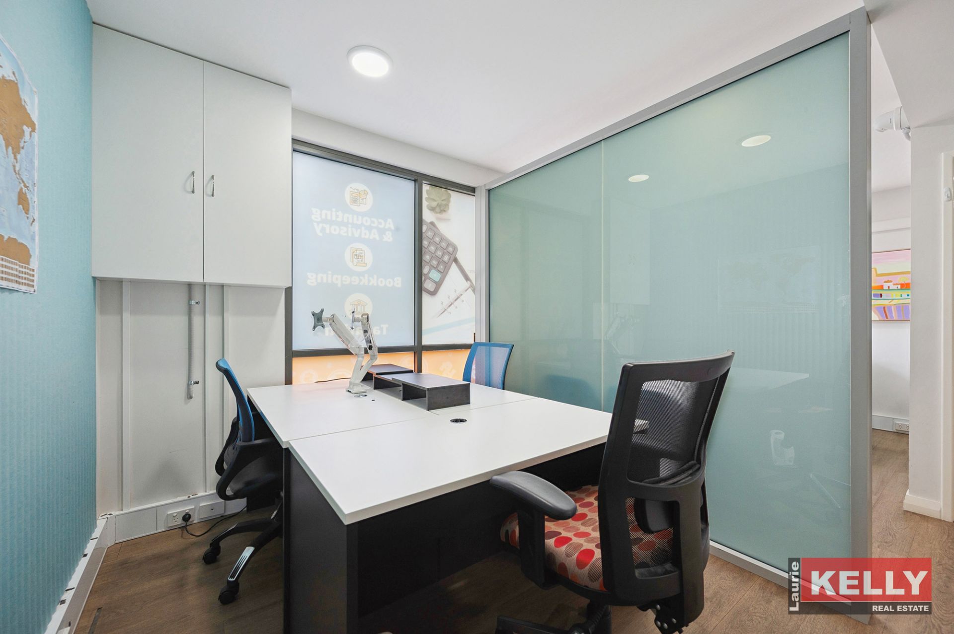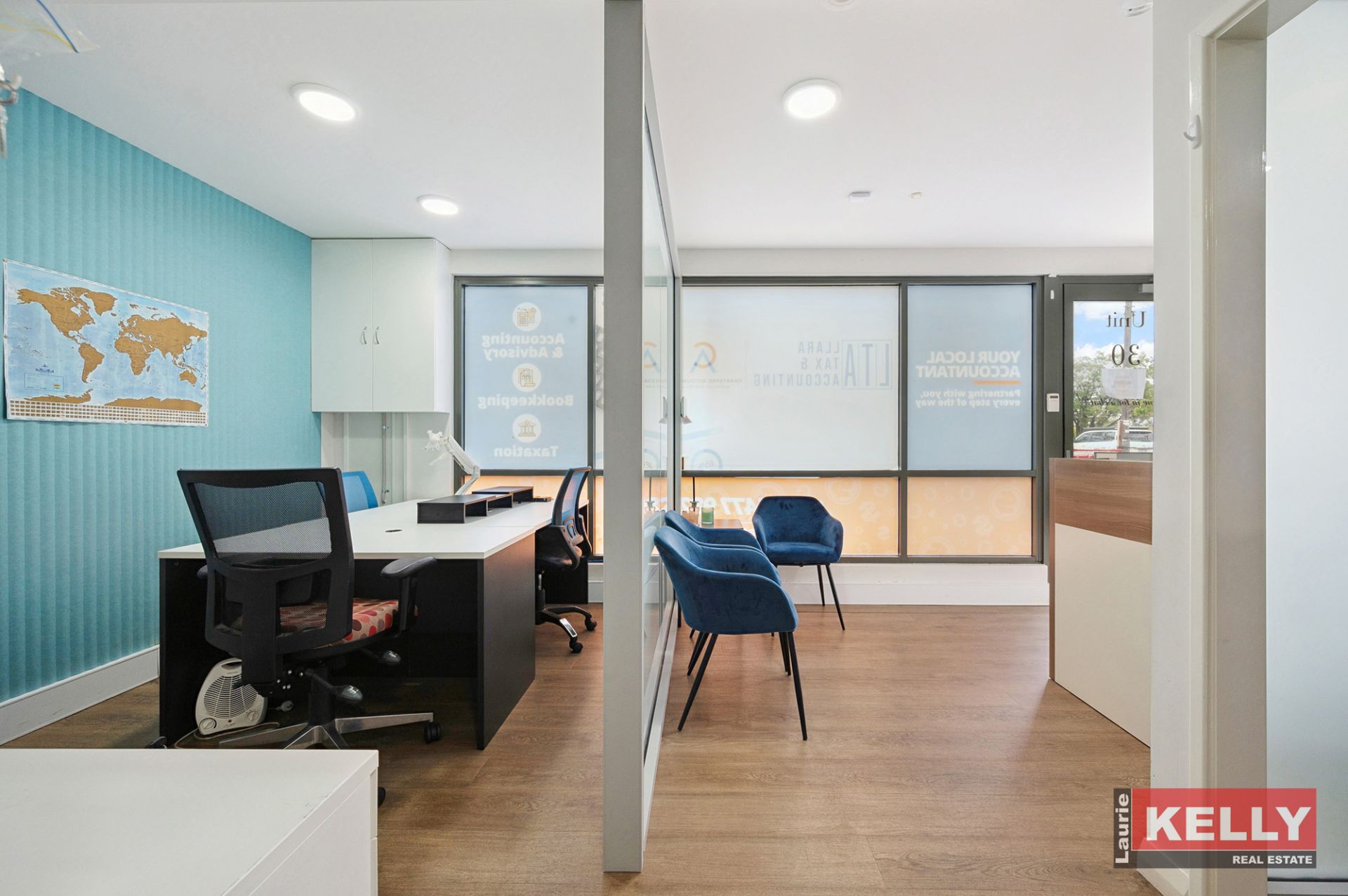 - Space: Internal area of 35sqm PLUS 14sqm private parking space. It boasts a front reception desk, meeting room and independent office (All included)