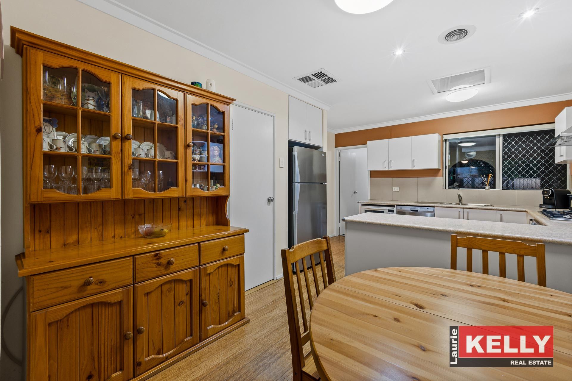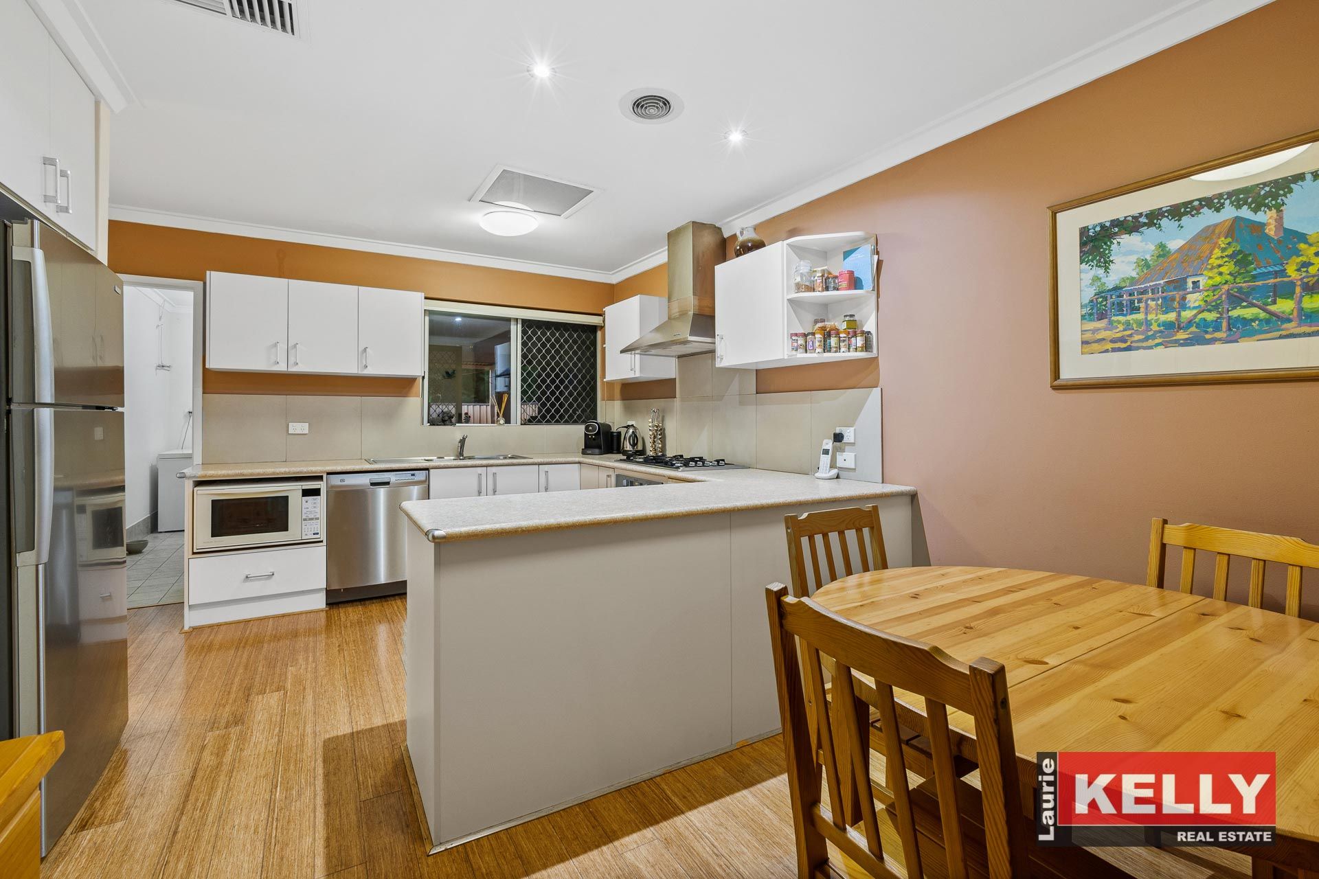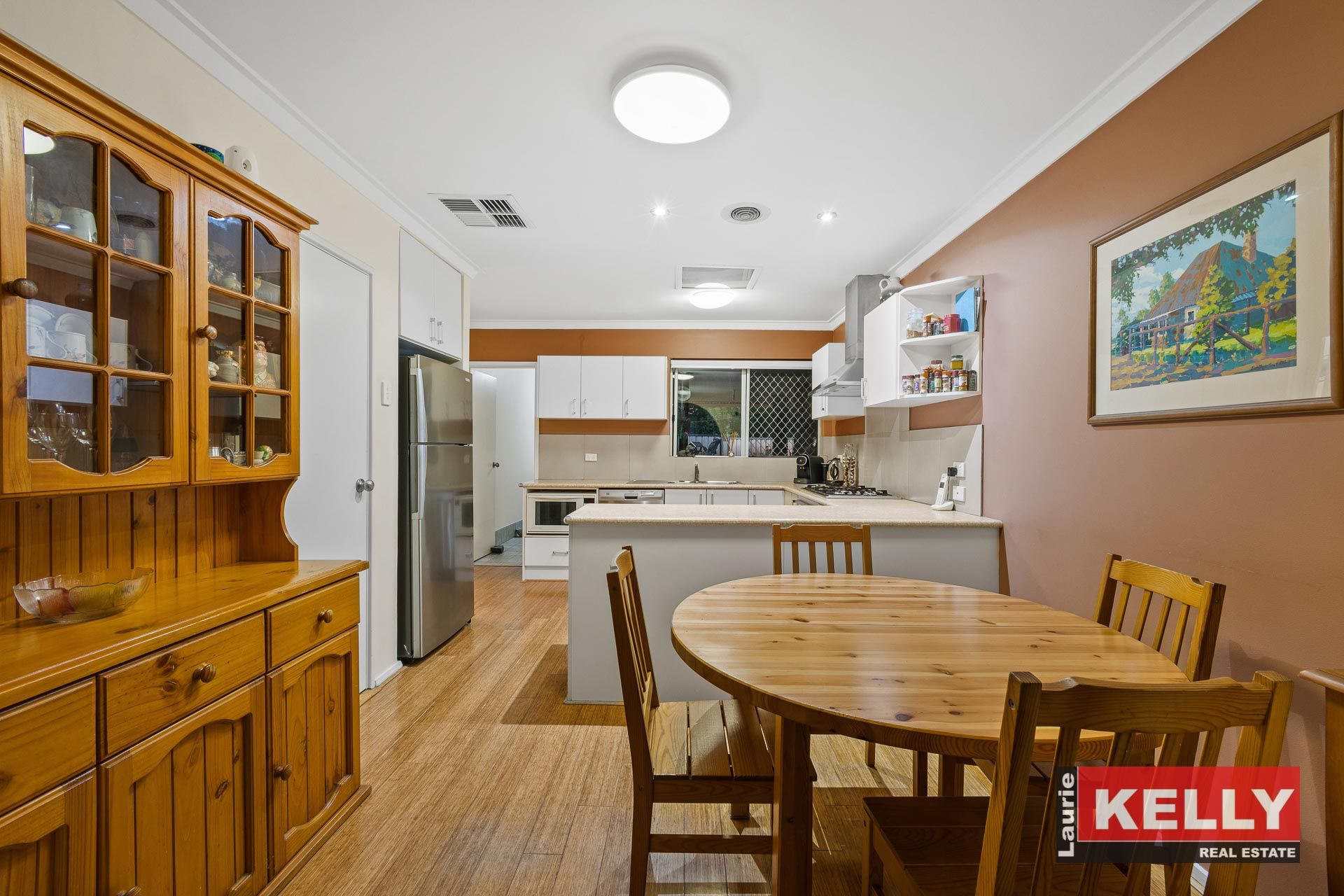 • Open plan kitchen/dining with new timber floor.